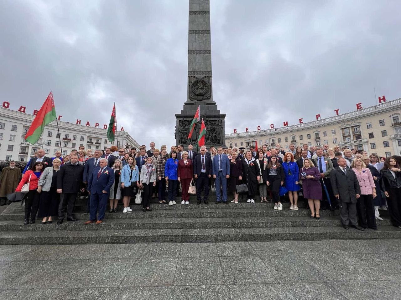 На площади Победы участники мероприятия перелистнули "Календарь "Памяти и Победы" в рамках городской акции ко Дню Независимости Беларуси.