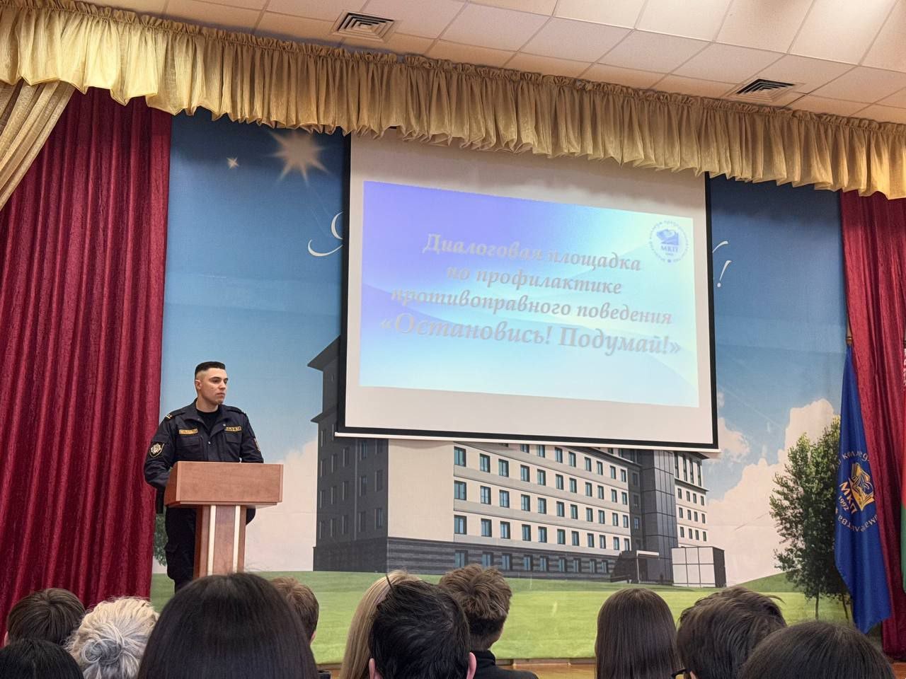 Диалоговая площадка по профилактике противоправного поведения "Остановись! Подумай!" прошла в Минском колледже предпринимательства. С молодёжью пообщался лейтенант милиции Иванушкин П. А....