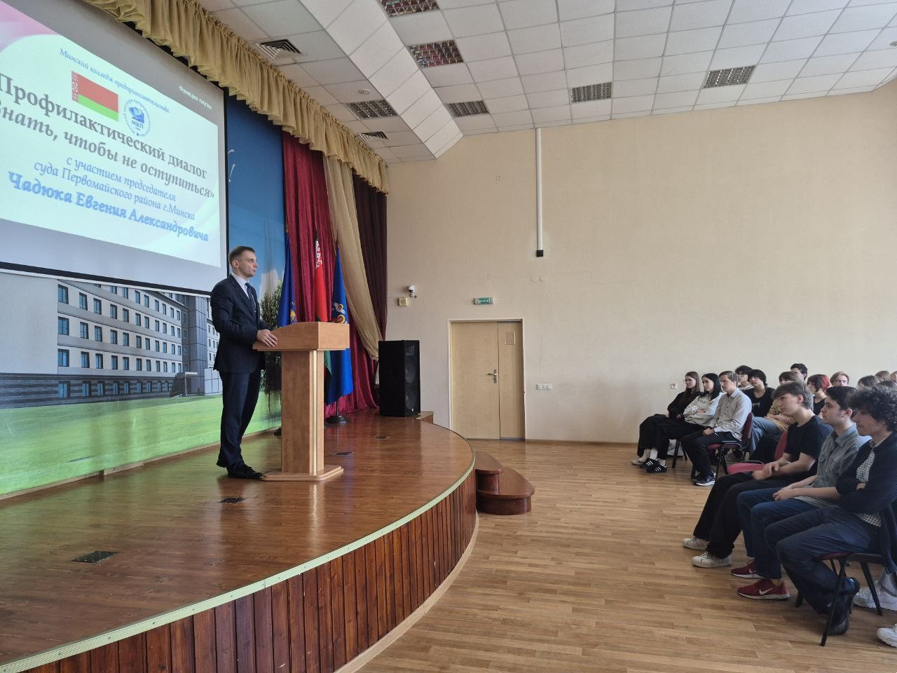 В рамках декады кибербезопасности в Минском колледже предпринимательства состоялась диалоговая площадка "ЗНАЙ, ЧТОБЫ НЕ ОСТУПИТЬСЯ". С молодёжной аудиторией пообщался председатель суда Пе...